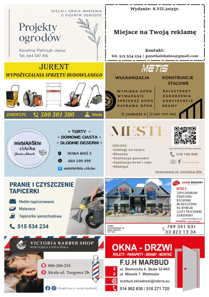 Cieszy nas, że możemy być częścią Waszych działań marketingowych – niezależnie od tego, czy chodzi o mały biznes, czy większą firmę. Wierzymy, że wspólnie tworzymy coś więcej niż tylko gazetkę – budujemy przestrzeń do lokalnego rozwoju, obecności i komunikacji.